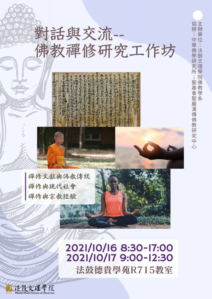 佛教禪修是傳統佛教的核心元素,在現代化的脈絡中,禪修更是受到哲學、心理學、社會科學、腦科學等的跨領域學科所重視。 本著跨域與對話的精神,本工作坊規劃三個與佛教禪修研究相關的面向進行交流討論:1. 禪修文獻與佛教傳統;2. 禪修與現代社會;3. 禪修與宗教經驗。 透過這三個領域,我們希望提供禪修研究者一個跨佛教傳統與跨領域之交流與對話平台。 我們期待一方面提升佛教禪修研究的深廣度,另一方探索佛教禪修在現代社會推動中的多重意義、局限與挑戰。
