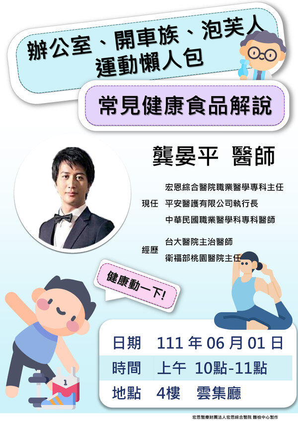 【講座】辦公室、開車族、泡芙人運動懶人包及常見健康食品解說 - 職業安全衛生