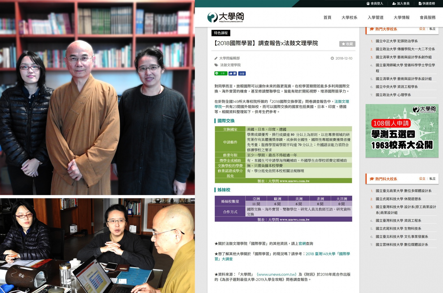 3月26日(星期二)大學問【校長到】專題企畫執行長魏佳卉與編輯黃惠瑄蒞校採訪惠敏校長的求學歷程﹑興趣志向的探索與未來方向的抉擇,藉由人生經驗的分享,祈望能給高中生一些啟發。校長認為在維持基本的生活節奏,應該要以終生學習及培養好習慣為基礎,透過「終身學習(博學)五戒:閱讀﹑記錄﹑研究﹑發表﹑實行」以及「身心健康(雅健)五戒:微笑﹑刷牙﹑運動﹑吃對﹑睡好」之型態打破慣性思惟,重新設定自己的心智導航系統,在有限的生命做好生涯規劃及時間管理(番茄工作法)。此外,校長鼓勵青少年們要善用人腦與電腦來正確地面對煩惱,學會多方面研商,自己做適當抉擇。抉擇執行之後,能適時檢驗﹑評量成果,調整方向,如此可以踏實地運用此良性循環(研商﹑抉擇﹑評量)來規劃人生。