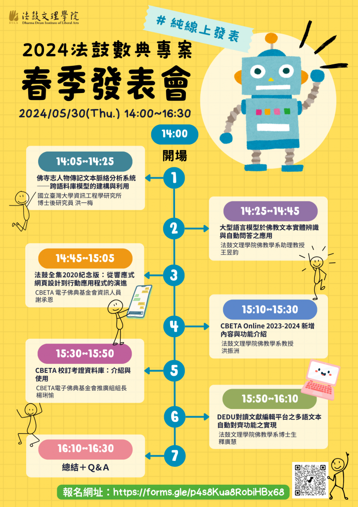 | 15:10-15:30 | CBETA Online 2023-2024 新增 | 洪振洲 法鼓文理學院佛教學系教授 |