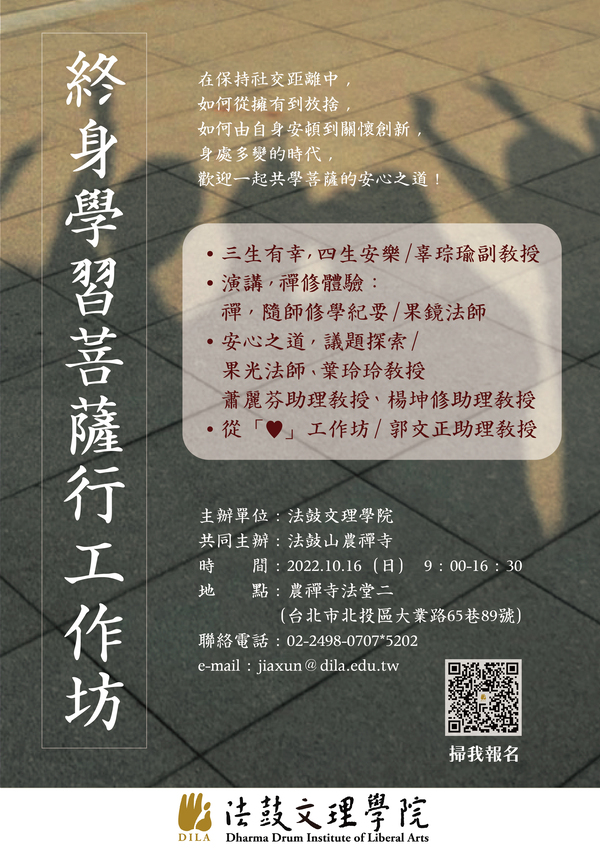 在保持社交距離中,如何從擁有到放捨,如何由自身安頓到關懷創新,身處多變的時代,歡迎您來共學菩薩的安心之道!