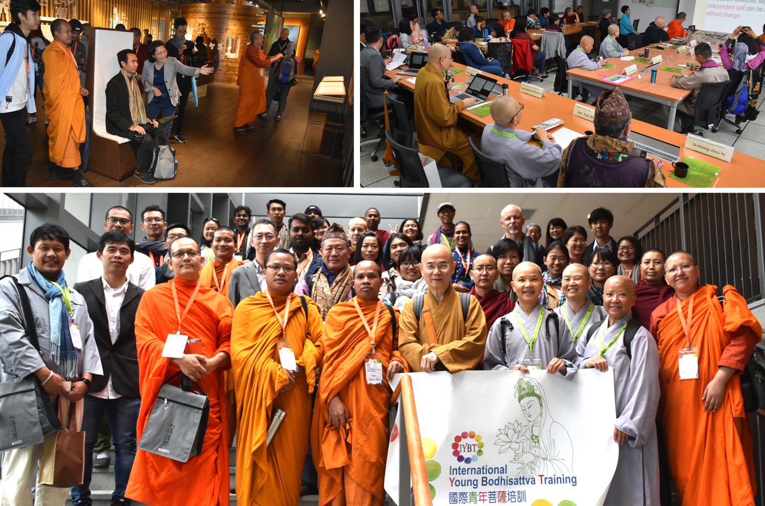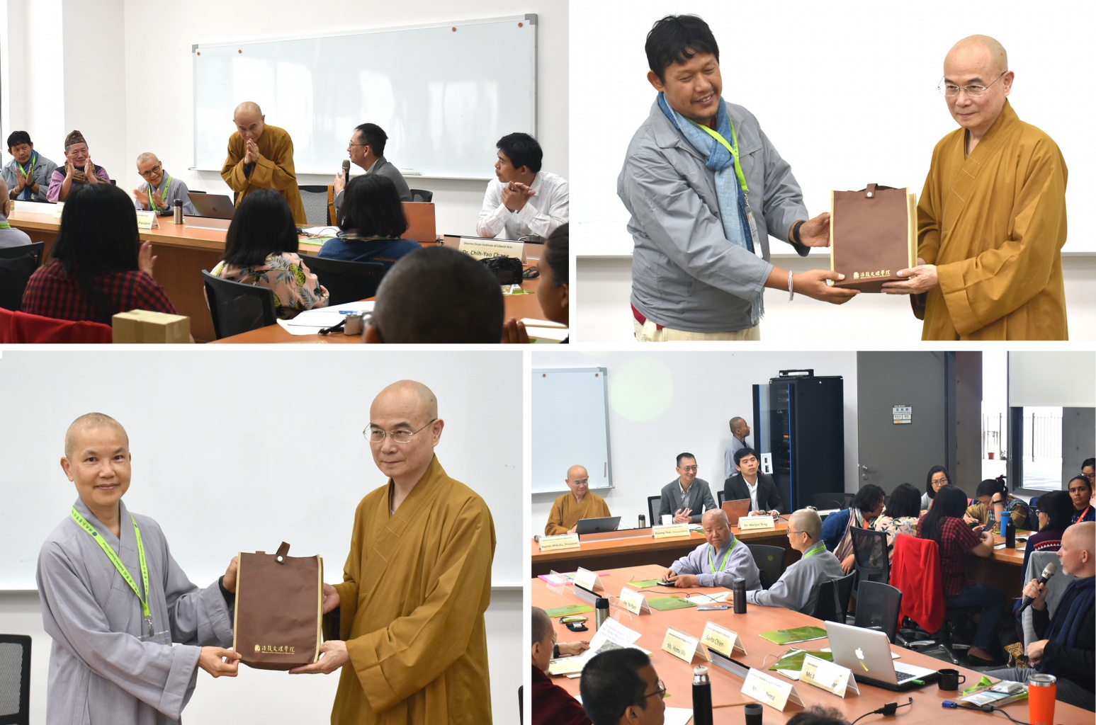 5月8日(星期三)由國際入世佛教協會(INEB)與佛教弘誓學院合辦之國際青年菩薩培訓營隊一行42位師生蒞校,先至大願‧校史館參訪,再前往雲集廳進行交流。交流會是由本校國際事務組張志堯組長主持,敬請佛教弘誓學院院長圓貌法師、INEB Bobo Lwin先生致詞後,續由本校佛教學系鄧偉仁主任分享以社會經濟面向透視重新接合之人間佛教為討論議題、校長惠敏法師隨後則以死亡質量指數報告(Quality of Death Index)、《念住經》之「四念住」、植葬等進行分享佛教臨終關懷與安寧療護之實況。此交流會引起彼此熱烈的討論,身為INEB 講師的游祥洲教授及Jonathan Watts也積極參其中,並圓滿結束。
