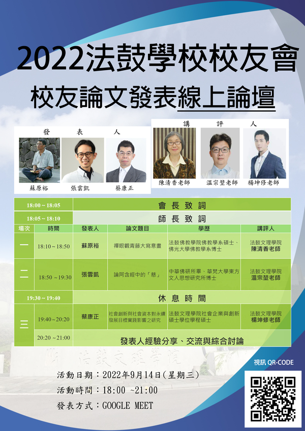 活動資訊 2022法鼓學校校友會校友論文發表