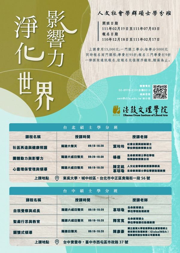 【推廣教育】歡迎報名人文社會學群碩士學分班(110-2)